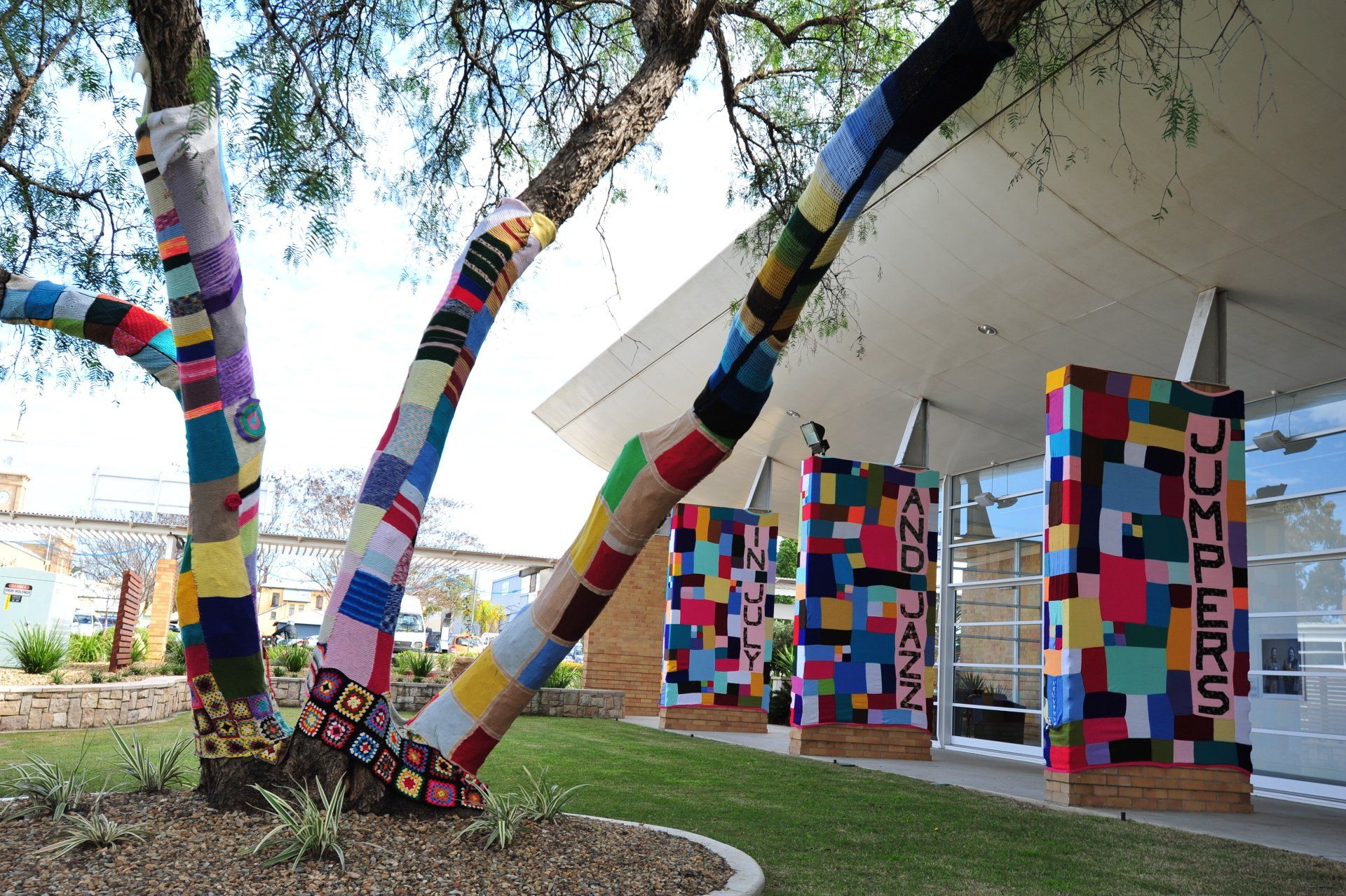 Daisy was a knitter and collector of fancy yarn. She also LOVED Jumpers & Jazz in July! In Daisy’s memory we are making kites and kite tails using her vast collection of decorative yarns. The yarn kites and tails will be transformed into swathes to decorate Jumpers and Jazz in July events.